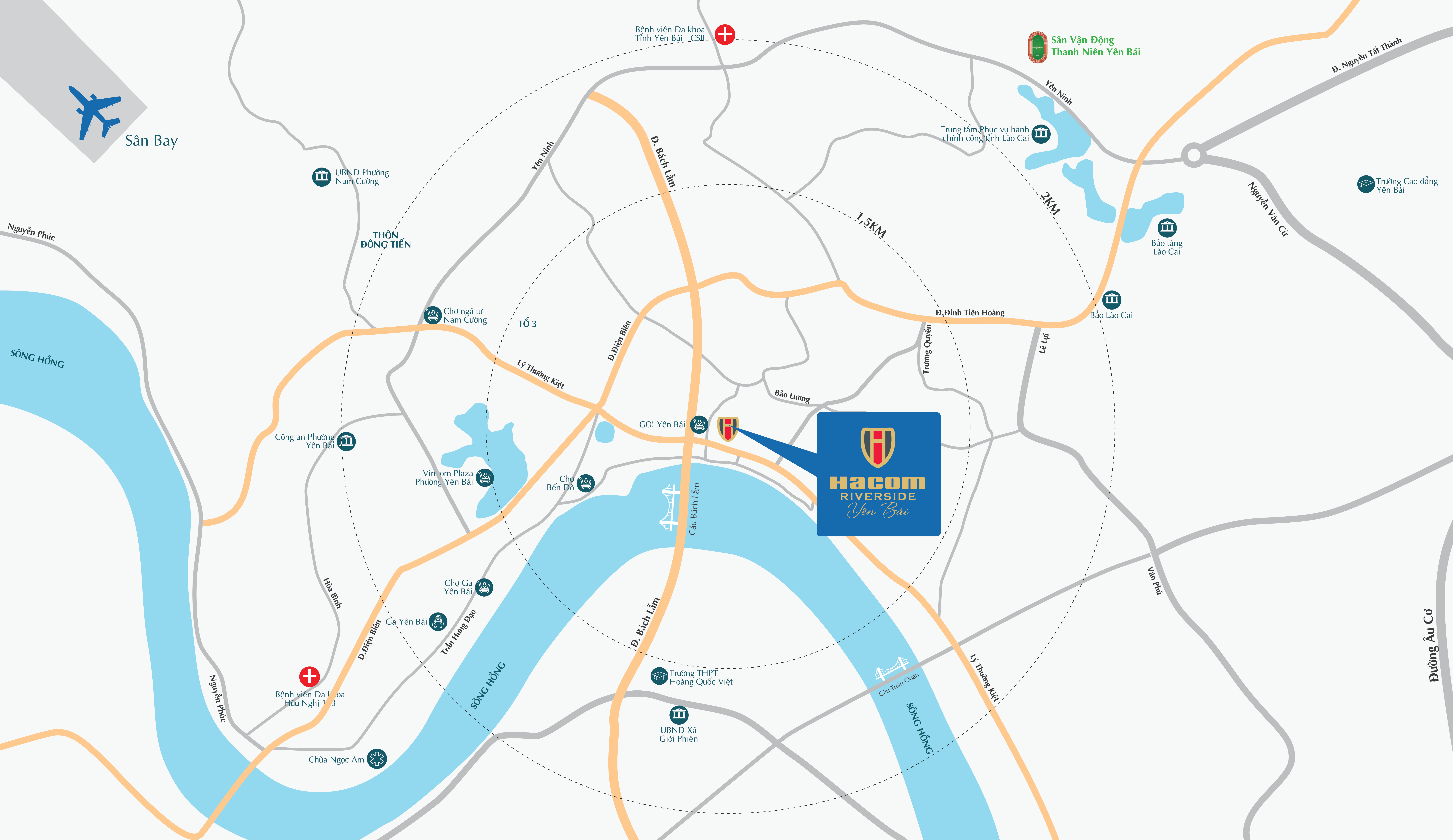 Với vị trí đắc địa Nhất cận thị, nhị cận giang, tam cận lô, Hacom Riverside Yên Bái kết nối thuận tiện với khu vực trung tâm, đem lại sự thuận tiện cho các cư dân.