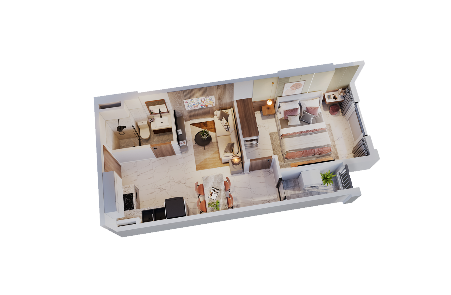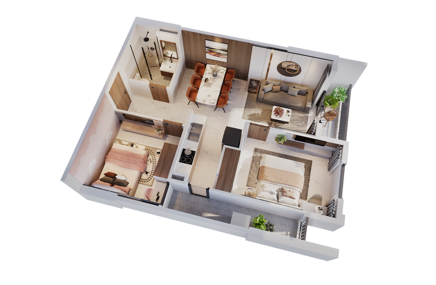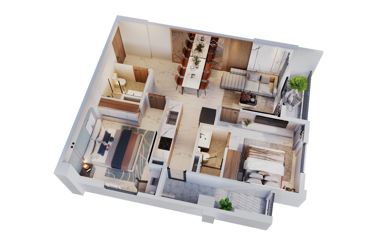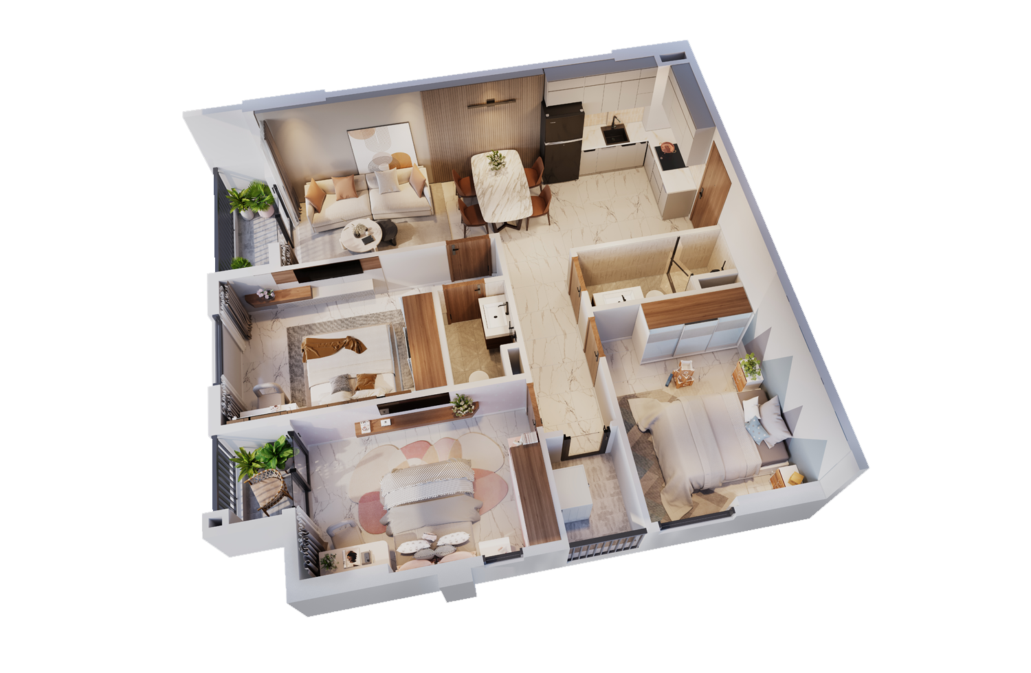 - Căn hộ 2 phòng ngủ: 62,5m2 đến 67,7m2